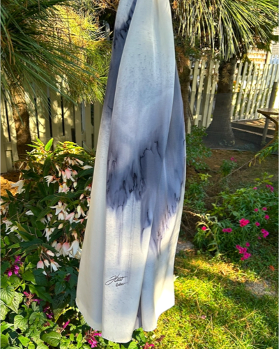 Foulard fait de crêpe de Chine en soie luxueuse peint à la main, unique et original.